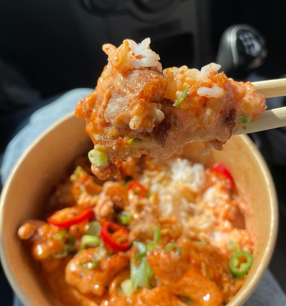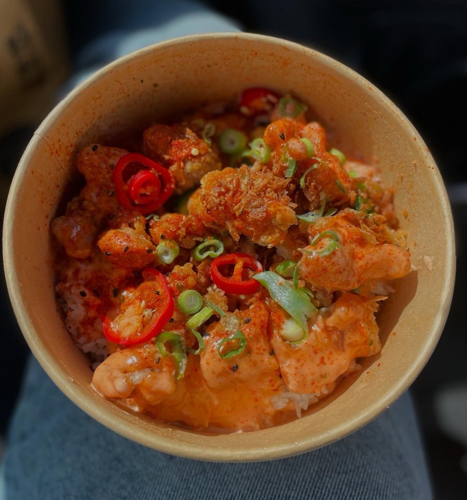 The Tonkatsu Sando has become their viral signature dish. Pork belly is brined, braised, and breaded over a meticulous three-day process, then served on soft white bread with creamy Kewpie mayo and crunchy raw cabbage. The way the sandwich is sliced and arranged in its packaging reveals a perfect cross-section of food symmetry—guaranteed to bring a smile to your face.